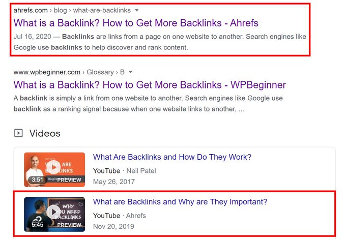 Repurpose your highest-performing articles into a YouTube video. By doing so, you can rank for both the normal spot and the Videos section on Google.
